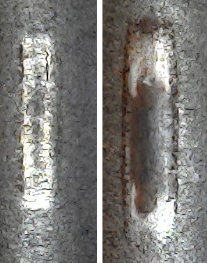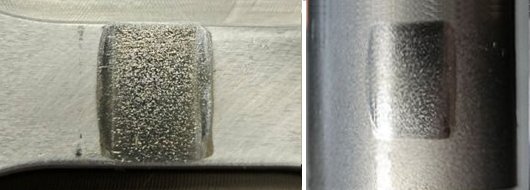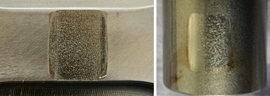 After 600,000 reciprocating cycles, in other words, 1,200,000 fatigue cycles, the specimen surfaces look like this: