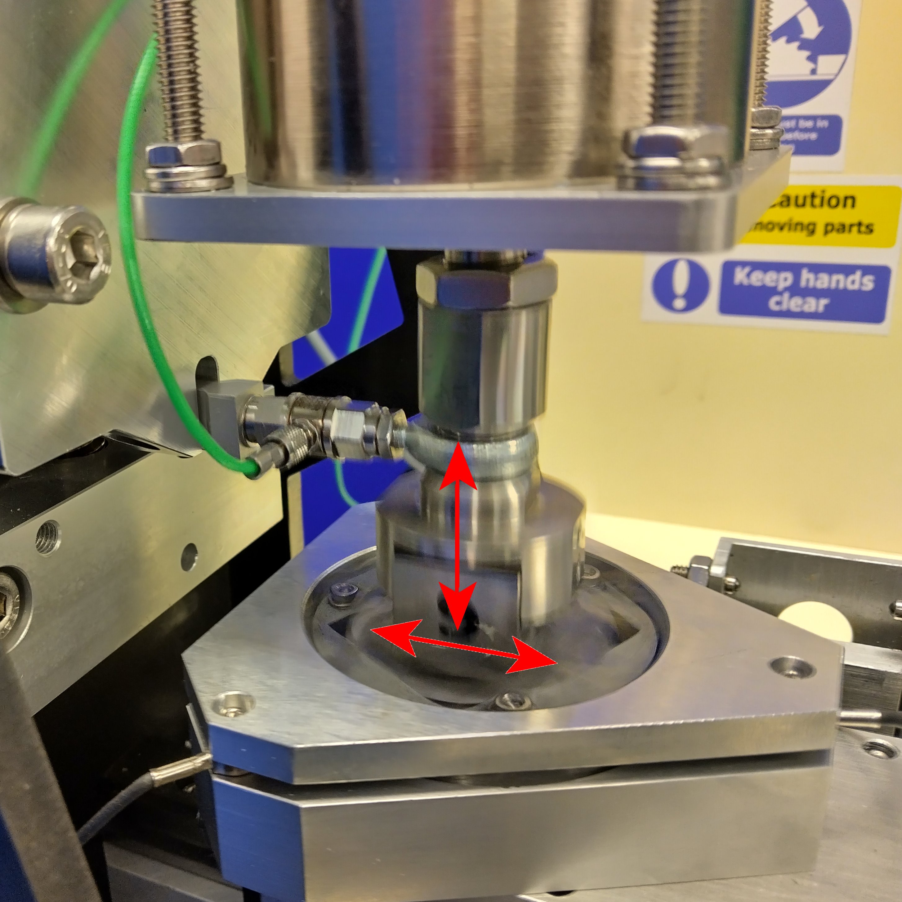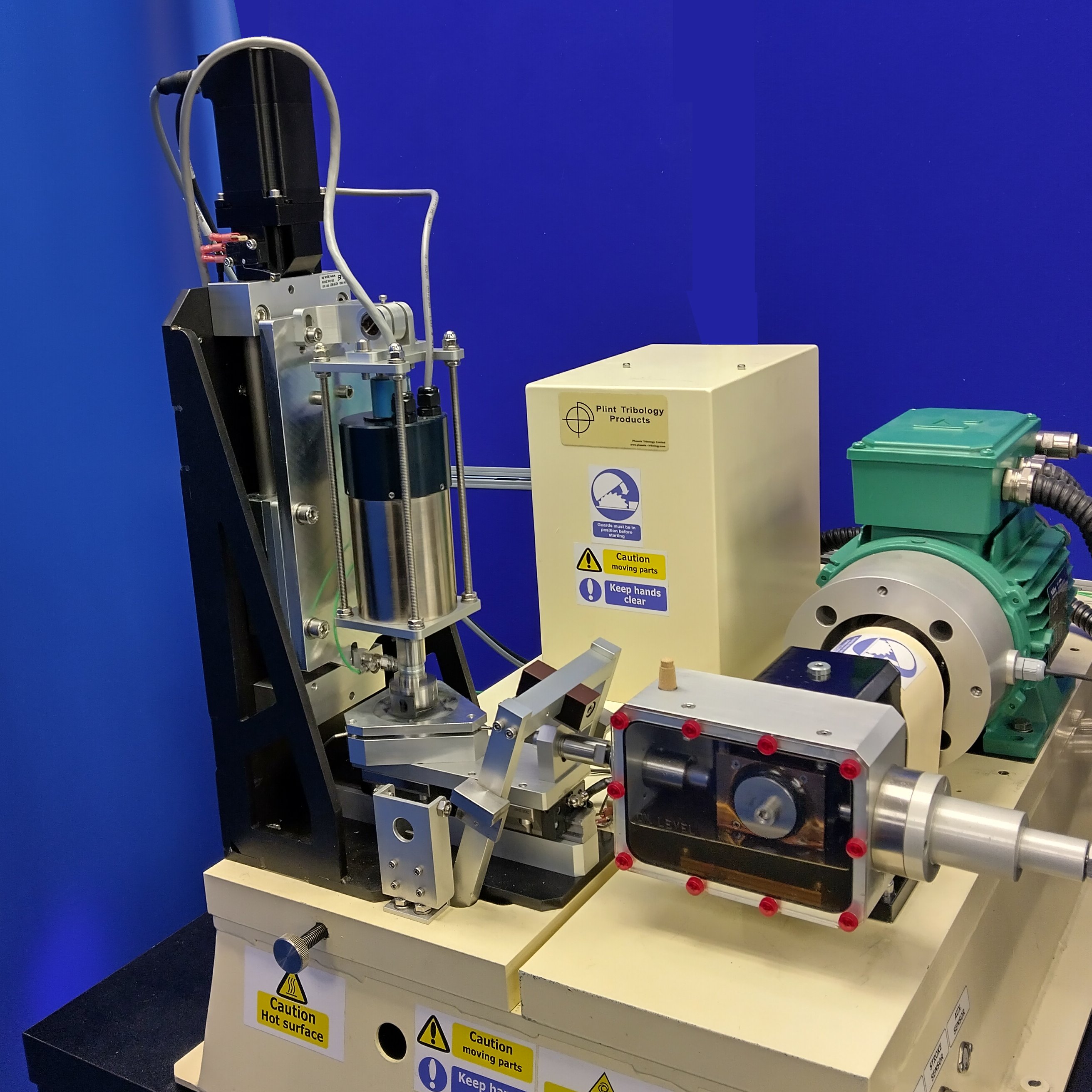 Interchangeable gearboxes allow tests to be run at frequencies down to 0.01 Hz, for investigating low velocity sliding and investigating stick-slip.